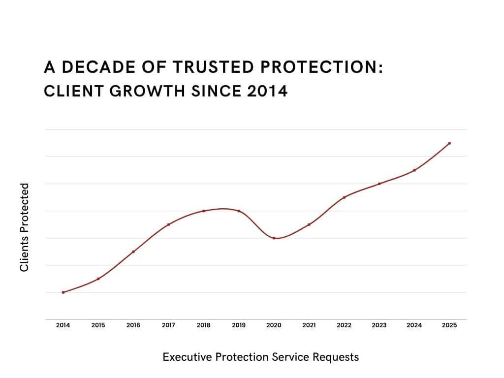 With more than 11 years of experience, our team of former law enforcement and military personnel has provided trusted security services to Presidents, global leaders, top-ranking military officials, and high-net-worth executives.